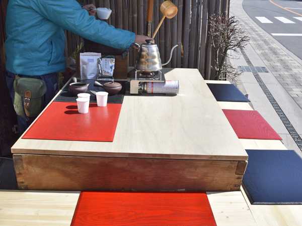 お隣の「西田園」では、店頭にお茶スタンドが設置されましたな!