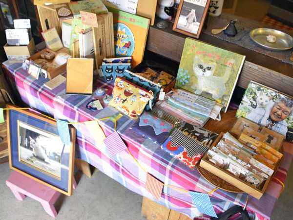 ささやか~に猫がらみグッズを集めた展示販売コーナーなり。