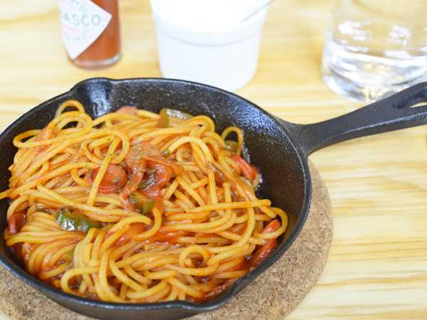 スキレットにのって、最後まで熱々で食べられるナポリタン
