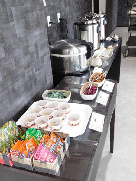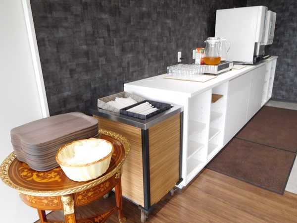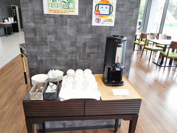 ホットコーヒー、ジュースなどのドリンクバーは斜め後ろ。