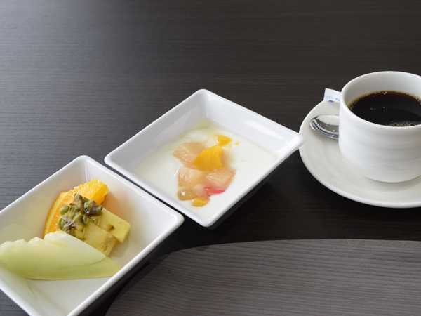 コーヒーとフレッシュフルーツ、ヨーグルトにフルーツポンチ。