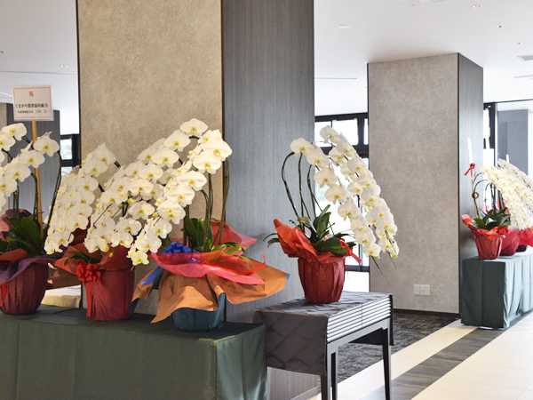 オープンしたばかりなので、お祝いの胡蝶蘭がいっぱい