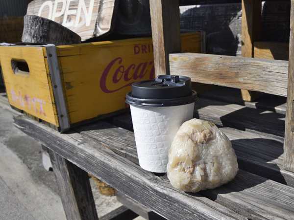 帰り道のお供に、まっちさんのホット珈琲とおむすびを連れて帰り…