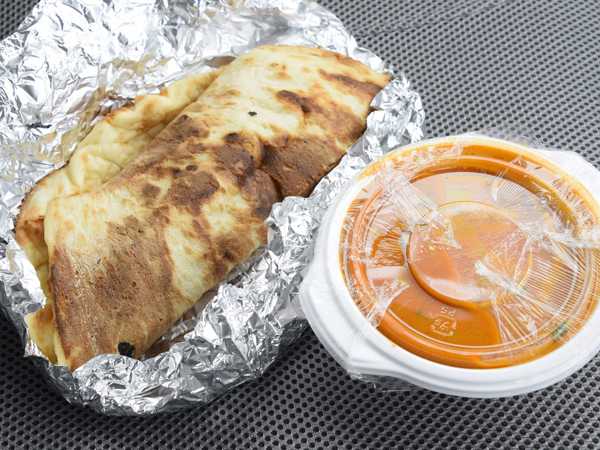 ナンは折りたたんで、シンプルにアルミホイルで包まれていたよ。