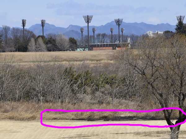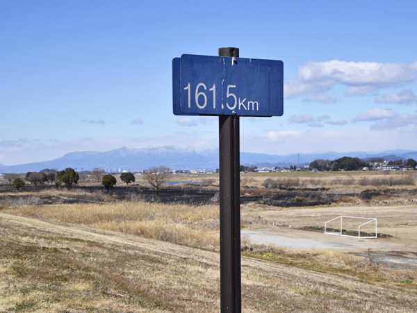 この164.0km地点の近く…対岸に大泉のグラウンドが見える辺り。