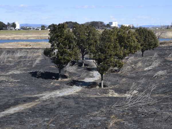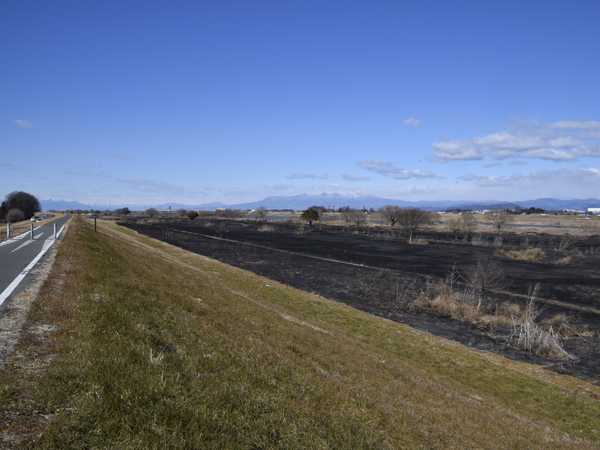 2月23日、熊谷市妻沼~善ヶ島にかけての利根川河川敷で大規模火災が発生。