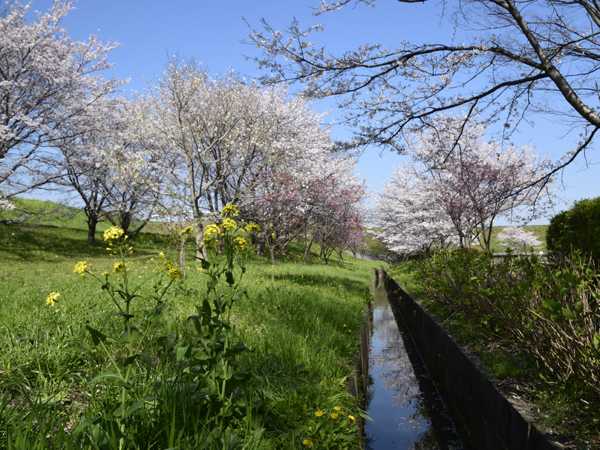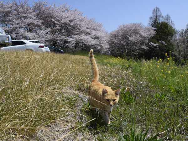 土手に上がり、反対側に回って桜並木の中へ入り込んでみますか!