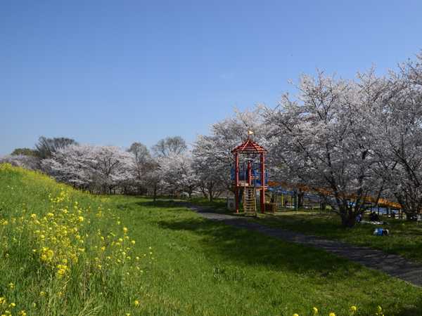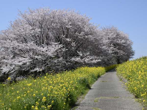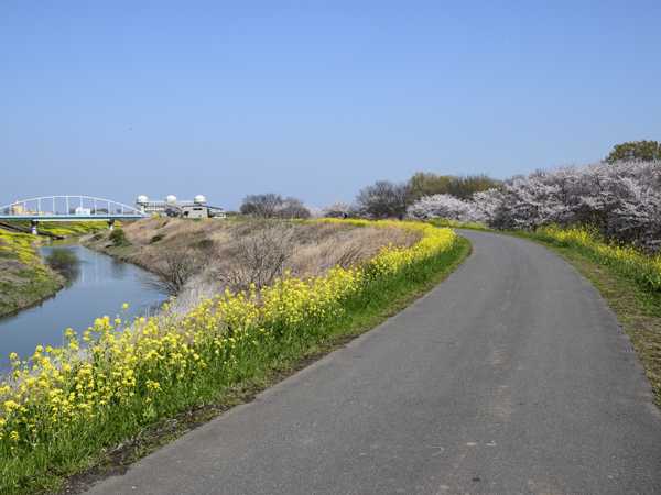 ナノハナいっぱいの、和田吉野川の土手に上がってみるもヨシ。