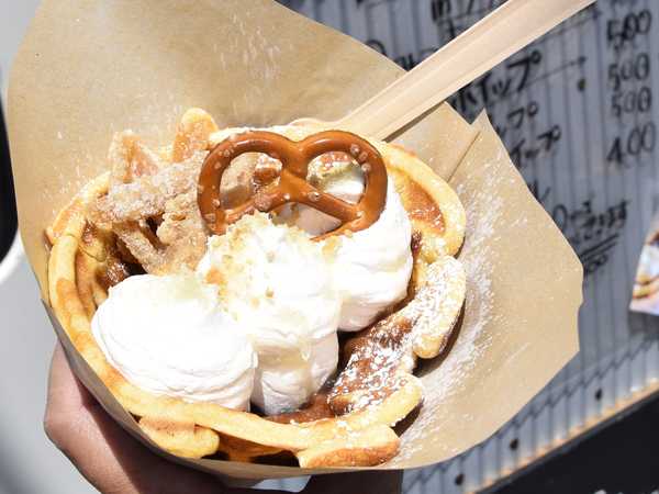 あっさりした甘みが美味しい豆乳生地ワッフルを器状にして