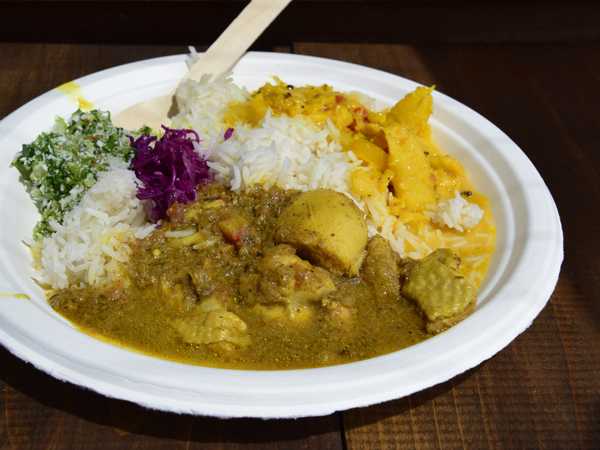 2種盛りでいこう。個性的な白身魚のイエローと、王道ココナッツチキンカレー。