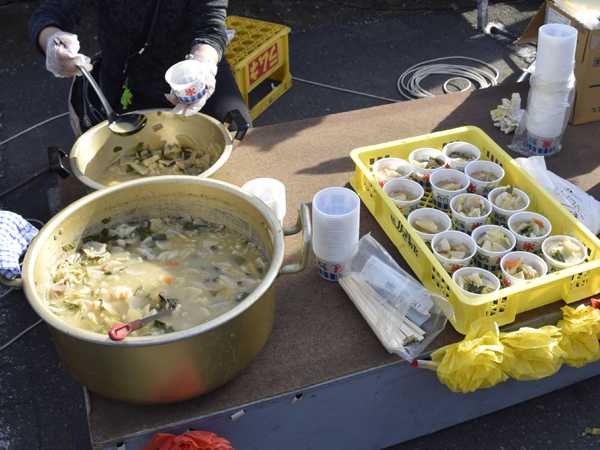出店者さんたちに振る舞う、大量の味噌スープ!