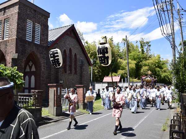 パウロ教会前から、市役所通り、第弐本町区山車の前を通り…