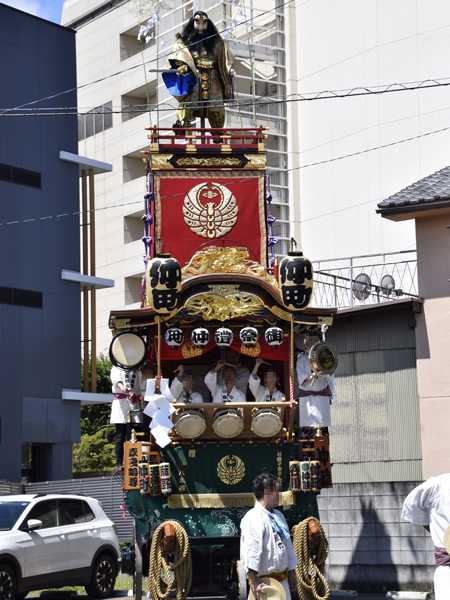 一気にまた西へ戻り、八木橋近くで待つ仲町区山車の前を通り…
