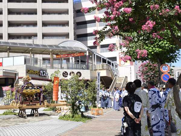 駅東口で待ち受ける筑波区山車のお迎えを受け…