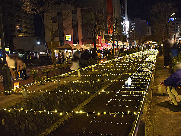​川を覆うイルミネーション、水面に映って綺麗