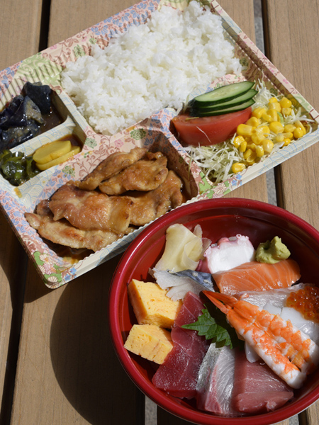 「ロース生姜焼き弁当」 「ちらし重」 、どちらも盛り付け綺麗