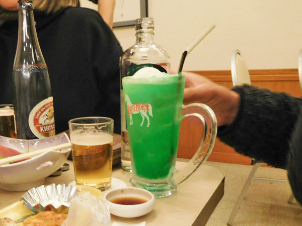 隣のお兄さん、クリームソーダに焼酎を入れてるよ