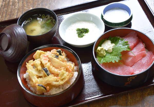 これは2年ちょっと前に食べた「夫婦丼」、まぐろ丼とかき揚げ丼のセット。