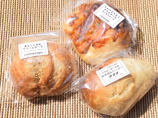 西へ戻って10番、さっきは準備中だった「ウスキングベーグル」。