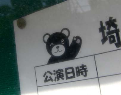 最近ほんとにクマさんマークが増えたよね、熊谷市!これは熊谷会館で近年見かけるくまマーク。黒一色のシンプルなものだけど、カワイイよね♪忘れた頃に再開する、気まぐれすぎるシリーズ 「熊谷市のクマさんマーク」!1年以上も間をあけて(^^; いきなり続きを♪とりあえず筆頭は、近隣で人気のイラストレーター・松本ことなさんによる燃えるクマさん“くまがやん”ね! 激しいのにカワイイ、不思議な魅力♪そして次は。 ココでも以前載せた、サンハイツ目の前・くまがや館のクマさん「つくばくん」! この子は見栄子の弟みたいなモンよ、ホホホ♪(その意味は? よ~く調べればわかるかもしれないよフフフ…1月に、くまがや館で見栄子の展示会やる時に、本を1冊書くからその中でそれについても言及する予定♪ああ準備しなきゃ!)つくばくんには、妹とパパママ・じいばあもいるんだよ~! コチラ参照。そういえば、店内だから写真撮ってないけど…八木橋の「敬老の日」のイラストもクマさんファミリーだったわ! カワイイよそれと問屋町にも、青いクマさんマークの会社があったわね。ココは何気に古株? 熊谷でクマが流行る前からこのマークだったよ。これはホテルガーデンパレスの工事現場で見かけた工事用シート。1ヶ月前に撮ったんだけど、まだあるかな?新井組さんのね…ここの会社さん、前からこんなマークあった??詳しそうな知人に聞いたけど、彼も初めて見たって。さて。ここ最近急速に増えたクマさんの中にあって、このセンスはお気に入り♪明日は、そんなクマさんマークのお店を載せるよ!