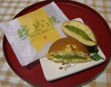 写真左は、季節限定の 菜の花まんじゅう 。菜の花入りのあんが入ってるものと思って