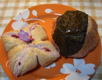 左は、淡いピンクの桜あんの入った 「桜あんぱん」 、さっくりとしたパイ。