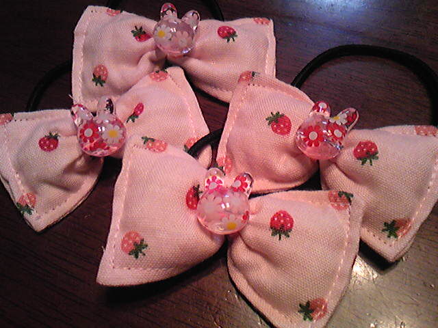 飾りのうさぎちゃんビーズを取り、ガーゼで作ったリボンに付けてみた。