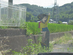 水汲みに行った。疲れていたが、大好きな場所だし、今日は鍾乳洞に行こうと決めて、わくわくしていた。途中、全く混んでいないのに、どうしても混んでしまう信号がある。道がいくつにも分かれているために、そうなってしまうのだが、何とかならないものかと、いつも思う。ふと・・目をやれば・・ホコリだらけで黒ずんで・・それでも健気に笑っている小学生を見付けた・・可愛そうに・・ 下市を過ぎ、小さいトンネルを二つばかり越えたスグ右手に「ザ・トンネル」という店がある。「鮎の塩焼き」とかいう看板も出ている。ここは台高方面の不思議で不気味な店(怒られるかな?)ではないので勘違いしないように・・そこを過ぎた所で、道路の左側に「草餅」というノボリを出している店がある。果物も置いてある。ここの草餅が旨いんじゃ!!ぐっちぃさんも気に入ってくれたぞい♪更にっ★果物が旨い!甘い!♪この日は桃が二種類てんこもり。試食をさせてくれるが、食べたら買わずにはおられんくらい旨い!とうとう二種類とも買った。これはホンマに旨い!買わんとソンやで。二種類とも味が違うんや。 スイカもデカイのが800~1200円や。冷えてる!・・1200円のを買って帰る事にした。おじいちゃんが畑で作って、嫁さん?が売ってる。食べ頃で出荷しているから、早く食べた方がいい。山から下りたとこだったら、そこで桃もスイカも食ったら旨いだろうな! 洞川の繁華街・・宿街は人が多かった。宿には宿泊の札がたくさんかかっている。まだ行の団体が多いんだな。でも今回は女性が多い。稲村や、近くの・・何だかっていう情勢の行場があるから、そこへ行くのかも? 水場の上に「五大鍾乳洞」だか何だかっていう洞窟があって、水汲み場で申しこまないと入れないようになっている。一人の時はなんか言いにくく、本当なら今日、牛さんをそそのかして入ろうと思っていたんだけど、途中から頭がガンガンしてきたので、諦める。土曜に梅田へ出かけたときに、あまりの人の多さに目が痛くなるし、喉をやれれて腫れ上がるし・・日曜は牛さんの親族集合のお墓参りで少し目が疲れたし・・で・・もう疲れがピークになったらしい。早々と帰路に着く。 今度は黒滝の案内所だ。ここのコンニャクが一番好きっ♪・・そして・・この時期・・とれたてのジャガバタがあるのだっ♪・・これがまた、うまいっんじゃあっ♪・・梅雨に入る前に収穫するから、採れたて~♪ジャガバタ食ってたりしてたら、バス停に2台も!バスの先には、うまいコンニャクとジャガバタの露天がある。下りて買ってるひともいる。バスが遅れていたら難しいが、そうでなかったら「買ってきてもいいですか~」って運転手さんにいえば、気持ちよく待ってくれる。コンニャクひと串100円。ジャガバタ3つひと舟で100円。頭は相変わらずガンガンしているけど、腹がすくのは別なんだな・・ 帰ってきて、美味しい桃と豆腐を息子夫婦に持ってたら、近くでお買い物らしい。ストーカーになって追いかける。 最近は「あいそ笑い」を覚えて、ますます女王様になった孫 今日は涼しい風が吹き抜けていくのでPCしてても大丈夫や~