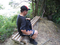 お昼を食べて・・牛さんが・・裏山へ行くと言い出すへえ~珍しい事もあるもんだ。 行かないつもりだったけど、「ついてきて~」の眼差しに・・後から追いかけた。第一展望台で追いついた。15:06もう時間が遅いので、第二展望台が精一杯かな?15:26 第二展望台。やっぱり今日はここまでやな。涼しい風が吹いているので、結構な時間を過ごした気がする。 帰り道にキノコを発見!いつも通っているのに気が付かなかったなあ・・もうひとつあった・・これはデカイ!!なんや・・ホットケーキみたいやなあ・・ 16:32 なんや・・?・・あれは・・?バレーボールみたいな物が・・ぶら下がってる・・ 16:40 下りてきたところの公園に・・拳法道場が・・ひっそりと・・復活していた・・数年前に不法という事で300万円を市の予算から捻出し、撤去したのに・・また・・短い時間の割には初めての発見があって驚いた。 裏山日記・目次へ