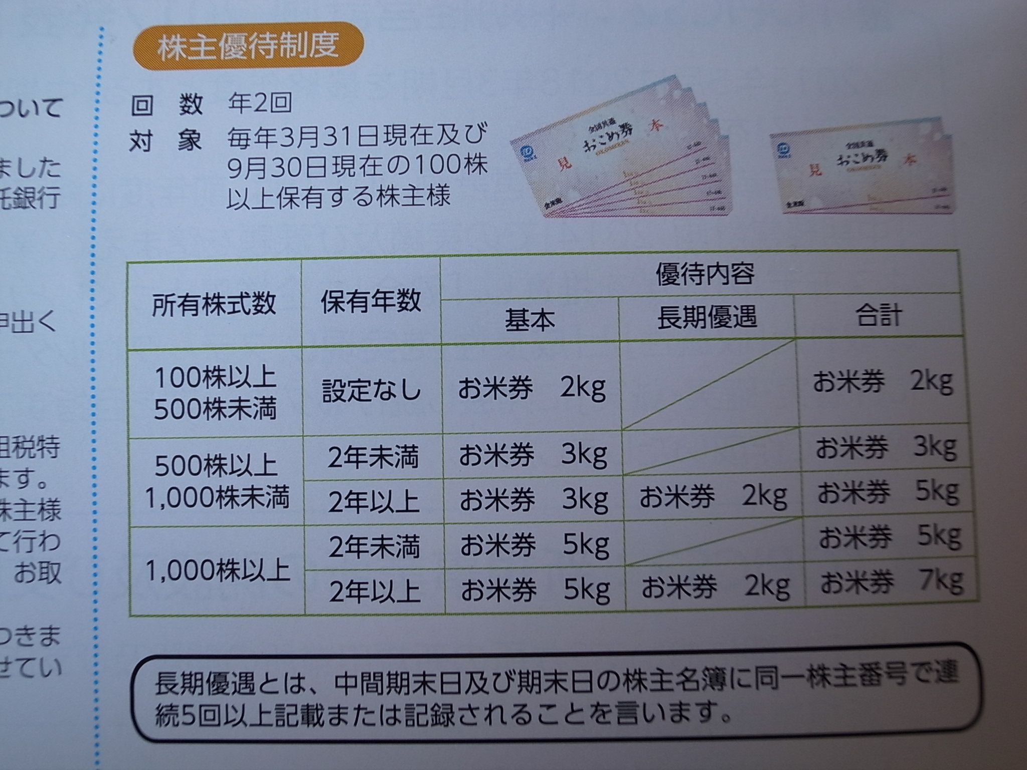 現在の株価は1195円、PBR0.58、株主持分比率は48.3%、今期予想PER11.93、配当利回り2.3%(27円)、総合利回り3.7%(27+17.6=44.6円)で、優待は100株保有で年2回、お米券2キロです。