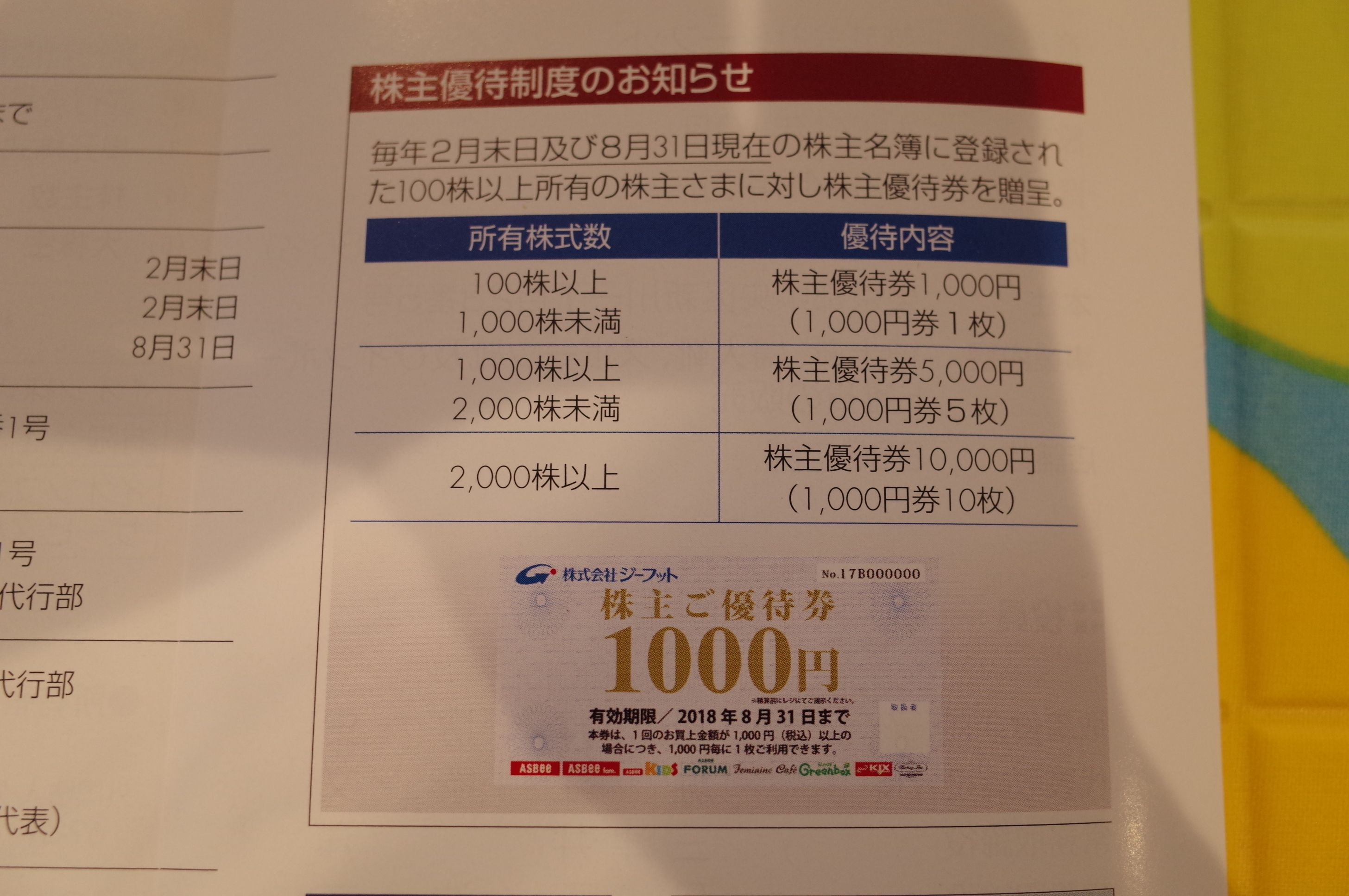ジーフットは昨年1年間ずっと既存店売上高が100%を下回るなど、業績は低迷しています。そして残念ですが、それは店舗に行ってもリアルに実感できます。商品の陳列もその内容も「何となくちょっとみすぼらしく、旧態依然としてくたっとしている」んですね。ただ私としては、十分な総合利回りが出ている事及び優待券が非常に使いやすいこともあり、今のところは優待MAXで保有継続の予定です。
