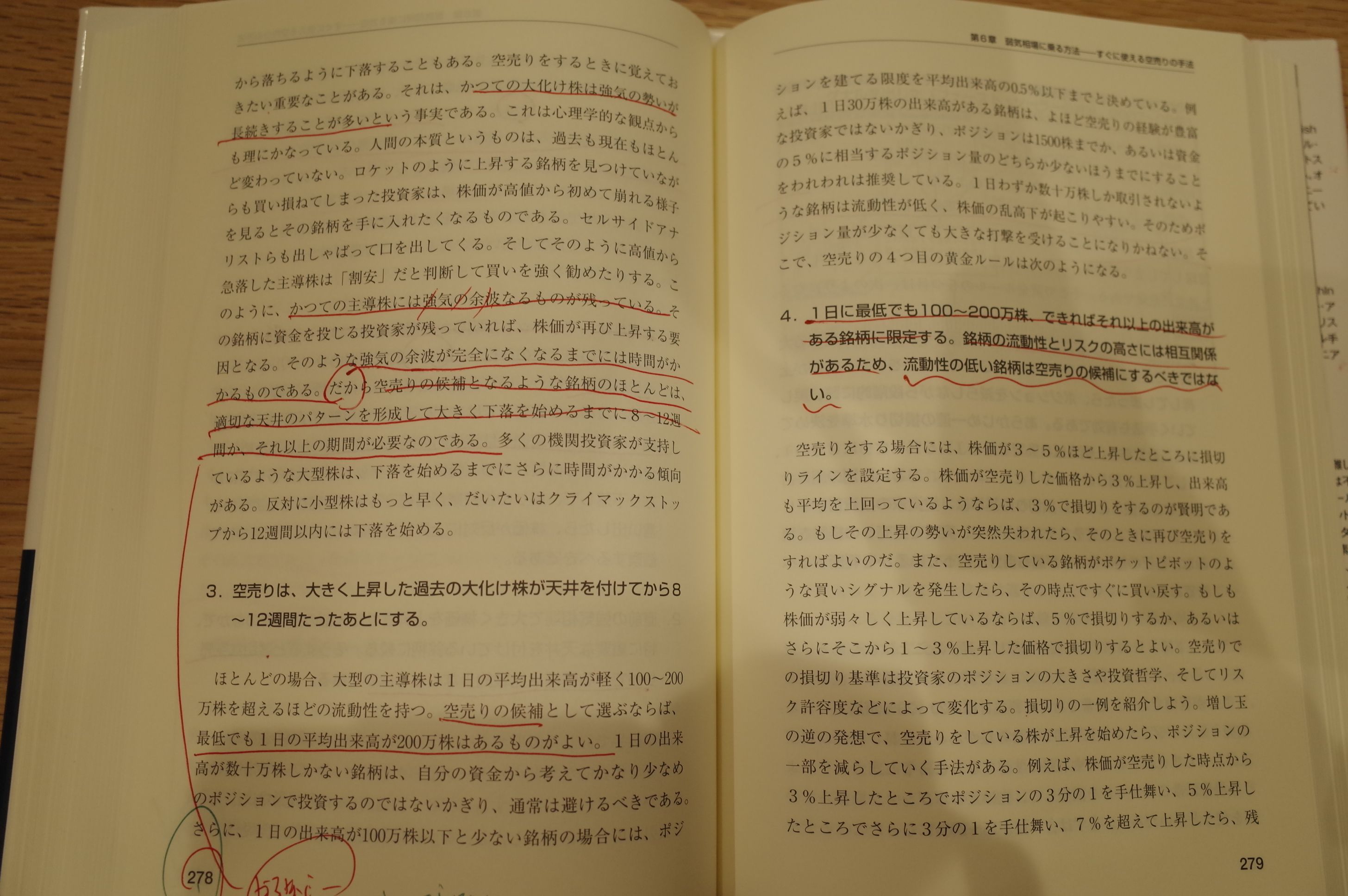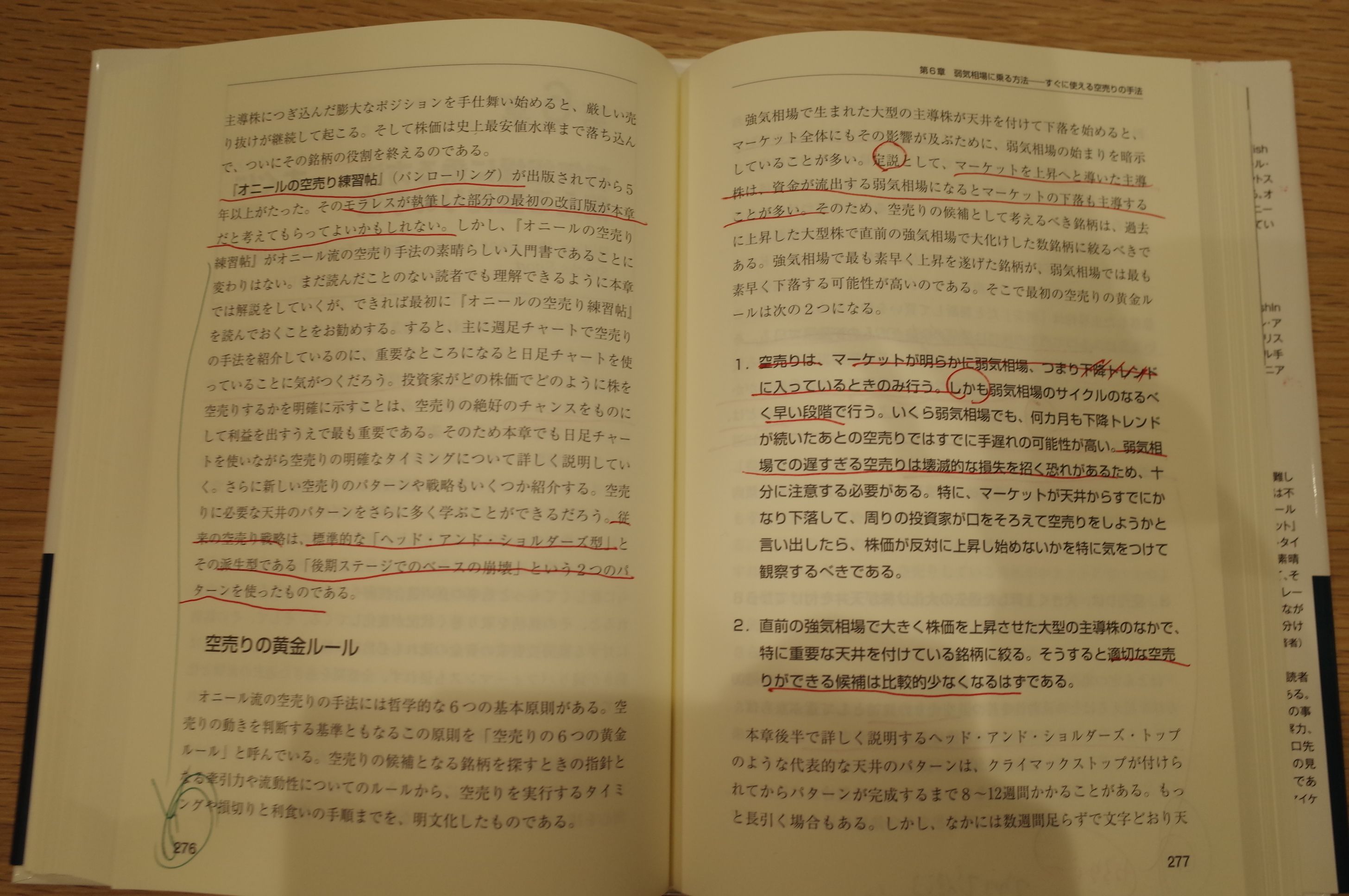 空売りは、マーケットが明らかに弱気相場、つまり下降トレンドに入っているときのみ行う。しかも弱気相場のサイクルのなるべく早い段階で行う。。。弱気相場での遅すぎる空売りは壊滅的な損失を招く恐れがある。