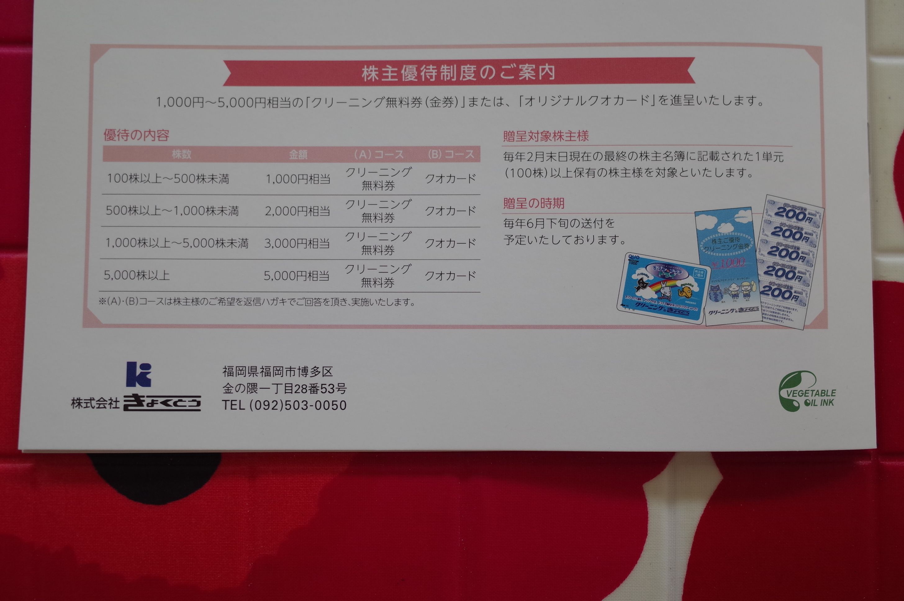 きょくとうは指標的には妥当なところかと思います。ただ財務状態はいいですし、比較的少額の投資でクオカードが戴けますし、カジュアルに株主優待投資を楽しむという意味において、とてもいい銘柄と思いますね。