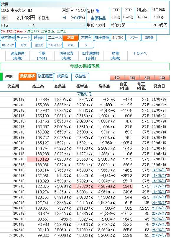 さて前述した通り、ホッカンHDは過去の業績推移にはやや波があり、また財務状態も鉄板と言うほどではありません。