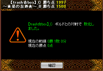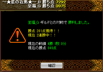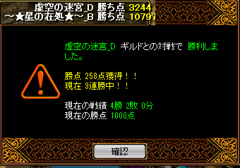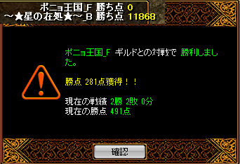こんにちは、みきもろです。長らくブログ放置してすいません。どうせ身内しかみてないからいいんですけどね!なんで突然復活したかというと、現在250制限ギルド「~★星の在り処★~」にメイン,制限キャラ共に所属しています。そこで、戦跡を残しておきたいなーと思い、ブログ復活に至った次第でございます!SS加工等見辛い部分はあるかと思いますが、よろしくお願いします!それでは早速10月28日 VS1000のバイオリン 様11月2日 VSRedHot 様11月5日 VSフォックス 様※出てないのでSS無し8000VS1000ぐらいで勝利とのこと。これからも更新ガンバリマス!