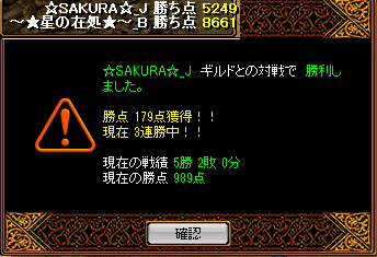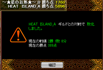 こんばんは!本日2回目の更新ですwGV終わったらすぐ戦跡書くことにしました~いつまで続くかわかりませんが・・・w■GV3月23日 VSHEAT_ISLANDバインド120ぐらい出てました・・裏切りも早くて簡単に崩されましたね~相手のみなさんも裏切りの対応早くて全然入らなかった><いずれリベンジしたいです!それでは、また~