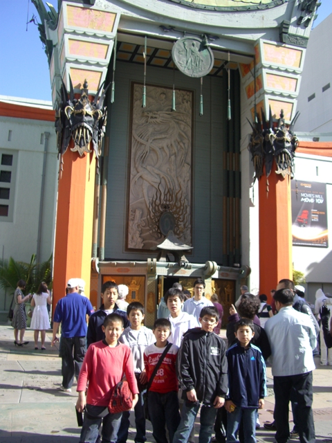 チャイナシアターの前で 朝からL.A.の市内見学に行く。まずはドジャースタジアムに行ってみるが、残念なことに中には入れてもらえず、球場の外を少し見ただけで終わり。そこから近いハリウッドの中心街であるチャイナシアターやコダックシアターで記念撮影をした。平日だというのに観光客はかなりいる。でも身動きが取れないほどでは無く、これでも空いている方なのだろう。いろいろな人のサインや手形が道路に彫ってあるが、それを探すだけでもすぐに時間が過ぎてしまう。今日はこれからサクラメントへ飛行機で移動しなければならず、慌ててL.A.国際空港まで戻る。
