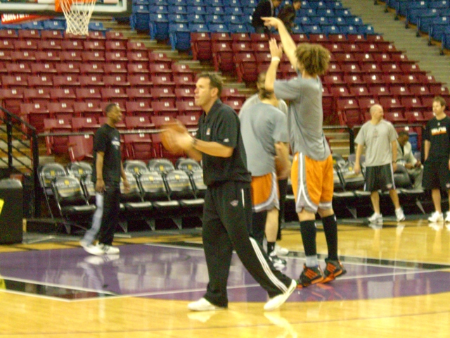 ダン・マーリー コーチコートには知った顔がいっぱいあった。サンズのコーチには、オリンピックにも出たあのダン・マーリーの姿があった。もともとサンズの選手だったから、いてもおかしくは無いな。それから2日後に、引退セレモニーが行われるというディバッツの姿も見えた。レイカーズからキングスに移籍し活躍した選手だ。