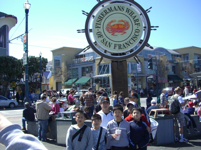 サンフランシスコで有名なのは、フィッシャーマンズワーフとアルカトラズ島だろう。湾内を巡るクルーズが22ドルだったので、それに乗った。乗船の時にレシバーをもらい、チャンネルを合わせるだけで日本語の解説が流れてくる。便利になったものだ。ゴールデンゲートブリッジは誰でも知っているが、その他にオークランドとを結ぶべイブリッジがあるとは知らなかった。船のデッキは風が強く、半袖では寒かったが、頑張ってビデオを撮り続けた。アルカトラズ島は、今では観光地の一つとして上陸も出来るが、私たちのクルーズは島の周りを見るだけだった。ここは監獄として有名なところだが、サンフランシスコから3kmしか離れていない。すぐにそこまで泳いでいけそうだが、海が冷たくて今までに3人脱獄したが、その姿を誰も見ていないことから、それが成功したのかも分からないということだ。 クルーズが終わってから、フィッシャーマンズワーフでお昼を食べることにした。私は、茹でたカニが食べたかったが、アレルギーだという子もいて、クラムチャウダーで我慢した。まん丸のフランスパンの中身をくりぬいて、その中にクラムチャウダーを入れてある。飲み物とセットで10ドルくらいだった。これがなかなかいける味だったのだが、フランスパンが少しすっぱい。パンだけだったら、とてもまずくて食べられないな。