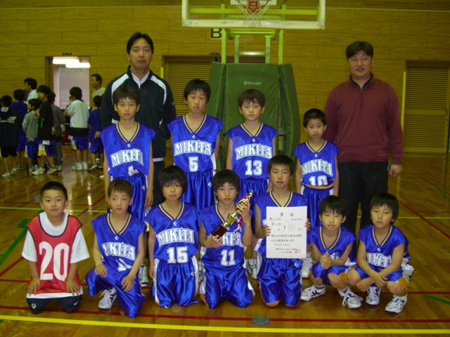 昨日の練習中止から、少しは神妙な顔をして集合していた男子。目にボールをぶつけた子も大丈夫だったようで、元気に来ていた。 さて、2次予選の相手はH寺昭和さん。ベストメンバーがそろう3・4Qrは何とかなるだろうと思っていたが、1Qrはやられっぱなし。いきなり20点くらい差をつけられてしまった。やられるのは仕方ないが、そのやられ方があまりにも悪い。もっと鍛えないとだめだな。しかし2Qrは頑張ってくれた。10点くらい盛り返し、何とか試合になってきた。 でもまだ10点差。さぁ、ベストメンバーで追い上げようとしたが、相手もベストでそう簡単には追いつかない。ところが3Qrの終りに相手の5番が5ファウルで退場となり、一気にこちらに流れが来た。リバウンドが取れるようになり、少しずつ追い上げる。とうとう追いつき、うちが2点を入れると相手がすぐに同点にするという時間帯が続いた。そして4Qrの残り8秒で同点で相手ボール。 絶体絶命だ。しっかりマンツーで相手につき、シュートを打たせないと指示をして送り出した。そうしたところ、うちの4年生が必死のディフェンスで相手ボールをひっかけ、キャプテンにパス。キャプテンがレイアップに行くところを相手にファールされ、フリースローをもらう。そのフリースローをキャプテンが落ち着いて1本決め、2本目をはずしたところでタイムアップ。劇的な勝利となった。ほんとに最後まであきらめないで、自分たちのプレーをしたことが勝利につながった。これで、考えてもいなかったベスト4に入り、次の大会のシード権を獲得した。その後の上位リーグでは、K世さんに負けてしまったが、この試合も1Qrでのリードを最後まであきらめずに追い上げた。ベストメンバー以外の子のレベルアップが出来れば、もっともっといい試合が出来ることだろう。また明日は強いチームと2試合できるので、どこまで自分たちのプレーが出来るのか楽しみだ。