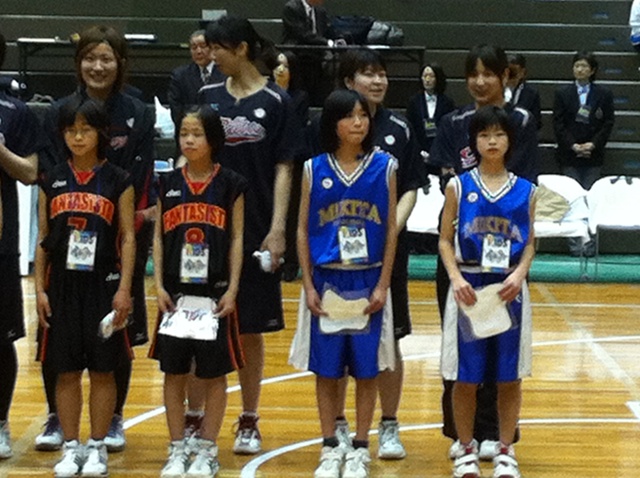 WJBLとJBLの試合が金岡公園体育館で行われ、そこにミニの子たちを連れて行った。うちのチームから、選手と一緒に入場するキッズエスコートに女子が2人、男子が3人選ばれてユニフォーム姿で行進した。6年生には、いい思い出になったんじゃないかな?私は急遽、写真係に任命されて車にあったデジカメを持ってきたら、いきなりの充電切れ。仕方が無いのでこれも充電が切れる寸前だったiPhoneで撮影することに・・・。やっぱりちょっと遠いと画像が良くないな。これからはしっかりデジカメに充電しておこう。試合の方は、JAL対トヨタはまったく面白くも無いもの。ラストシーズンだというのにJALは、ちょっと練習不足じゃないかな?そこまで力の差があるとは思えないのに、一方的になってしまった。その分、パナソニック対レラカムイの試合はほんとに盛り上がった。2度目の延長でやっと勝負がつくという緊迫したもので、最後に地元のパナソニックが勝って応援した甲斐もあった。堺のミニの子がたくさん見に来ていて、会場も盛り上がって良かったな。
