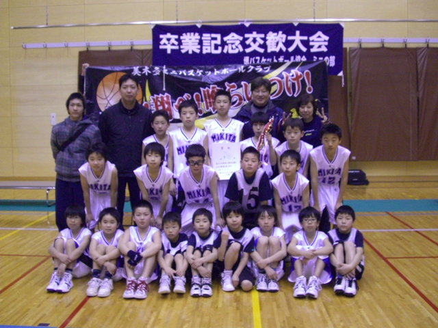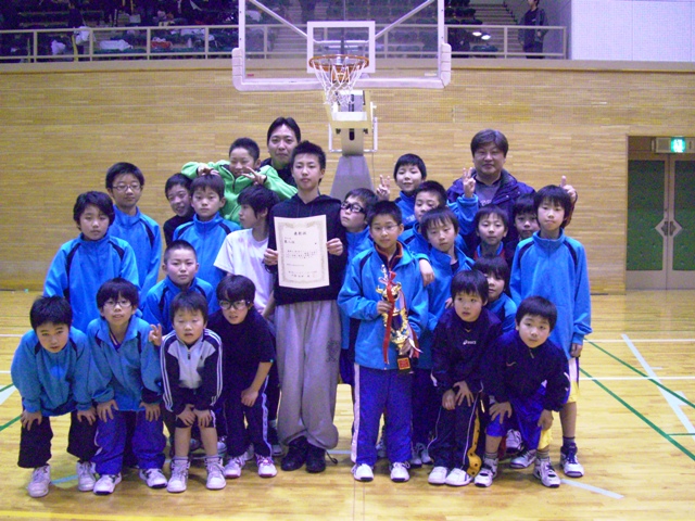 堺の卒業記念大会最終日。第一シードのうちは順当に予選を勝ち上がり、準決勝の相手はY上さん。最近、力を付けていて運動能力のある子もたくさんいる。さすがにこのくらいになると1Qrから余裕を持ってとはいかず、いつものように1・2Qrは我慢して、3・4Qrで一気に行くという作戦。その通りに前半は、24対13と点差は開かなかった。そして3Qrからは、上からオールコートで当たり一気に引き離すことを指示した。相手のガードがちょっと弱いこともあり、3Qrはほとんどフロントコートにボールを運ばせずこのQrだけで29対4で勝負を決めた。4Qrはハーフからのディフェンスに戻し、時間を使って63対23という結果だった。決勝の相手は、いつものようにE彰さん。3大会連続でうちが勝っているが、その点差はいつもギリギリのもの。うちはこれもいつものように1Qrは5年生だけ。相手のキャプテンがセンターで、マッチアップするうちの5年生センターにはちょっと苦しくなることは予想されたが、今日はいつも以上にE彰さんの方に気合が入っていた。相手のキャプテンにやられるのは想定内だったが、マッチアップしたうちの5年生センターが1Qrで3つファールをしてしまったことが想定外だった。これでオフェンスのバランスも崩し、1Qrは6対16と10点のビハインド。2Qrは逆にうちのキャプテンに頑張ってもらうしかない。ところが緊張からか出だしの2回のオフェンスで2つともターンオーバー。キャプテンがアシストしようとするので、「お前の大会なのだから自分で行け!」と指示を出す。そこから徐々にキャプテンが力を発揮し出して、ペースをつかんで来た。このQrは11対6で5点追い上げた。勝負の後半はまた上から当たる作戦だが、相手も簡単にはプレスに引っかからない。だがキャプテンを中心にしっかりディフェンスをして、相手にも簡単には得点を許さない。少しペースをつかんだと思われた3Qrの残り2分くらいで、うちの5年生センターが5つ目のファールを取られて退場。一気に試合は面白くなってしまった。このQrは、13対11と2点盛り返しただけだったが、確実にうちのペースになっている。4Qrもリバウンドの要を退場で欠く苦しい戦いだったが、やっぱり最後はキャプテンだった。相手のキャプテンとのマッチアップだったが、しっかりフェイントを入れて相手にブロックを許さず、得点を入れてくれる。リバウンドもいつも以上に頑張ってくれた。残り2分くらいで逆転してからは、ストーリングぎみにボールをゆっくりまわし、3点差をしっかり守りきってくれた。4Qrは、8対2でトータル38対35の3点差できっちり逆転勝ち。苦しかったがこれで堺のすべての大会で優勝した。こういう苦しい試合でも勝ちきることが出来たのは、みんなが頑張って練習してきたおかげ。自信にもなったことだろう。
