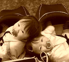 今日は、お天気はあまりよくないけれど、家の中にずっといると姫姫が、暴れだす為、ちょっとの晴れ間をねらって、お散歩へ♪ ベビーカーをおすママが気になるみたくて、後ろ上?を、二人同時に体をねじって見上げるのだけれど、なんだか、うまい具合に二人ともポジションキープしてて、笑えました。