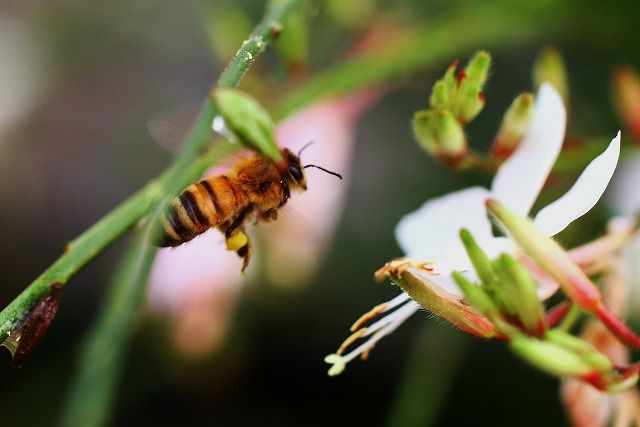 我が家の白蝶草に来る ミツバチ君達、早朝は凄い沢山のミツバチです