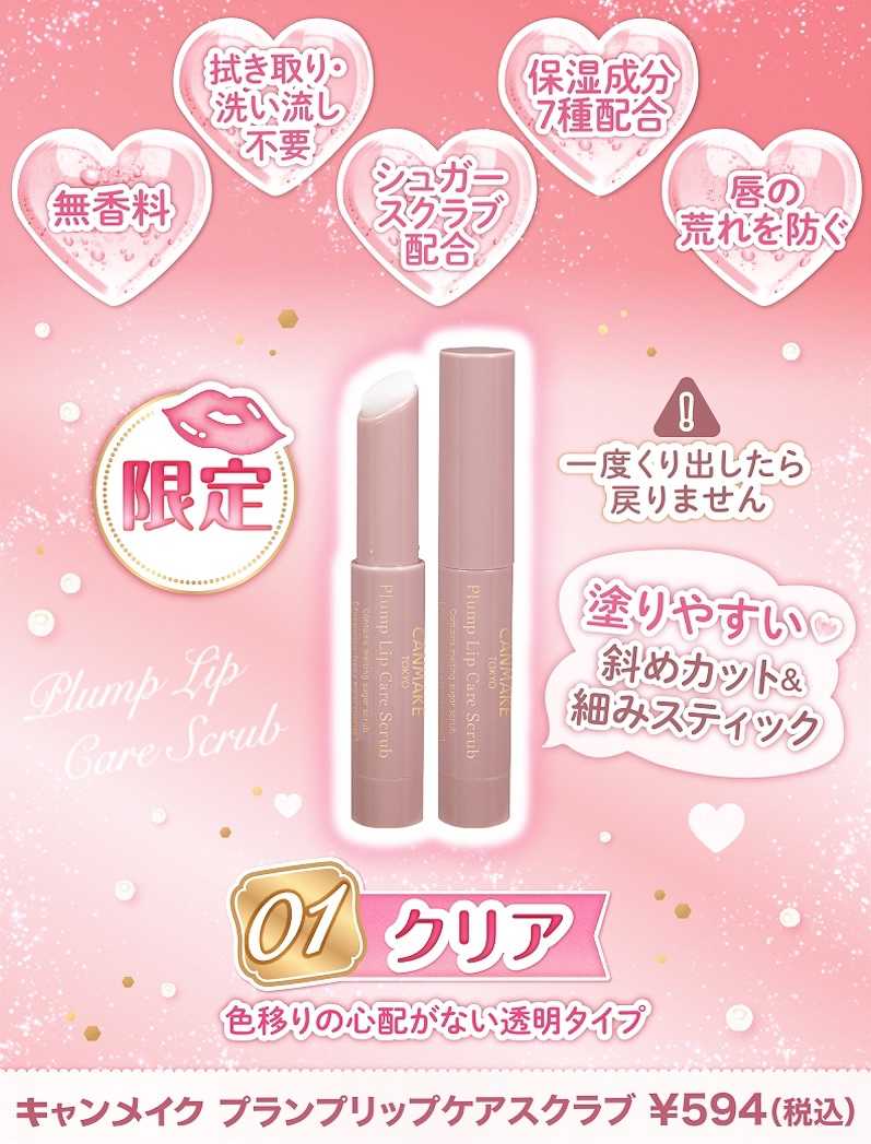 【6月15日 ポイント10倍】キャンメイク プランプリップケアスクラブ No.01 クリア 口紅・リップグロス アットコスメ国内正規品