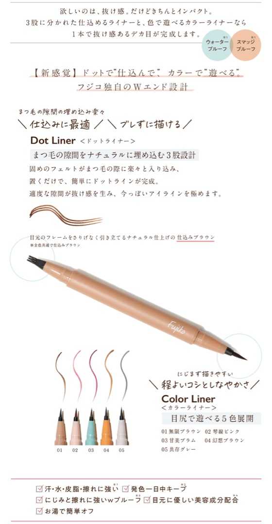 [新商品]【Fujiko公式】フジコ仕込みアイライナー ドットライナー カラーライナー リキッドアイライナー ウォータープルーフ スマッジプルーフ フジコ