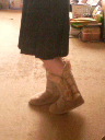 昨日注文したもこもこブーツ、もう到着しました!靴底が薄いって他の人のレビューにあったけど、納得。私が以前職場でよく履いていた安物の健康サンダルの底と同じ素材です。底の接着がはがれてダメになりそうな予感です。底の色が白ではなく、本体と同じベージュでまだ良かったです。それにしても、たっぷりのファーがかわいいです♪丈がふくらはぎの一番太いところなので不安だったのですが、(何しろししゃも脚ですから)もこもこボリュームがあるおかげで細く見えるのです。正面から見るとぼてっとした印象に なりますけどね…内側は全面が白いボアになっています。もっと寒くなっても、このブーツに合わせればワンピも暖かく着られそう♪サイズは全体的にとてもゆったりめです。私は足長は23.5cmですがかなりの幅広のため、普段は24cmの靴を履いています。昨日の昼の段階ではM(23.5相当)しか残っていなかったのでどんなもんかと買ってみましたが、靴下を履いていても履けました。また筒まわりもかぶせ部分があるため、とてもゆとりがあります。私はふくらはぎ周38cmもありますが、それでも