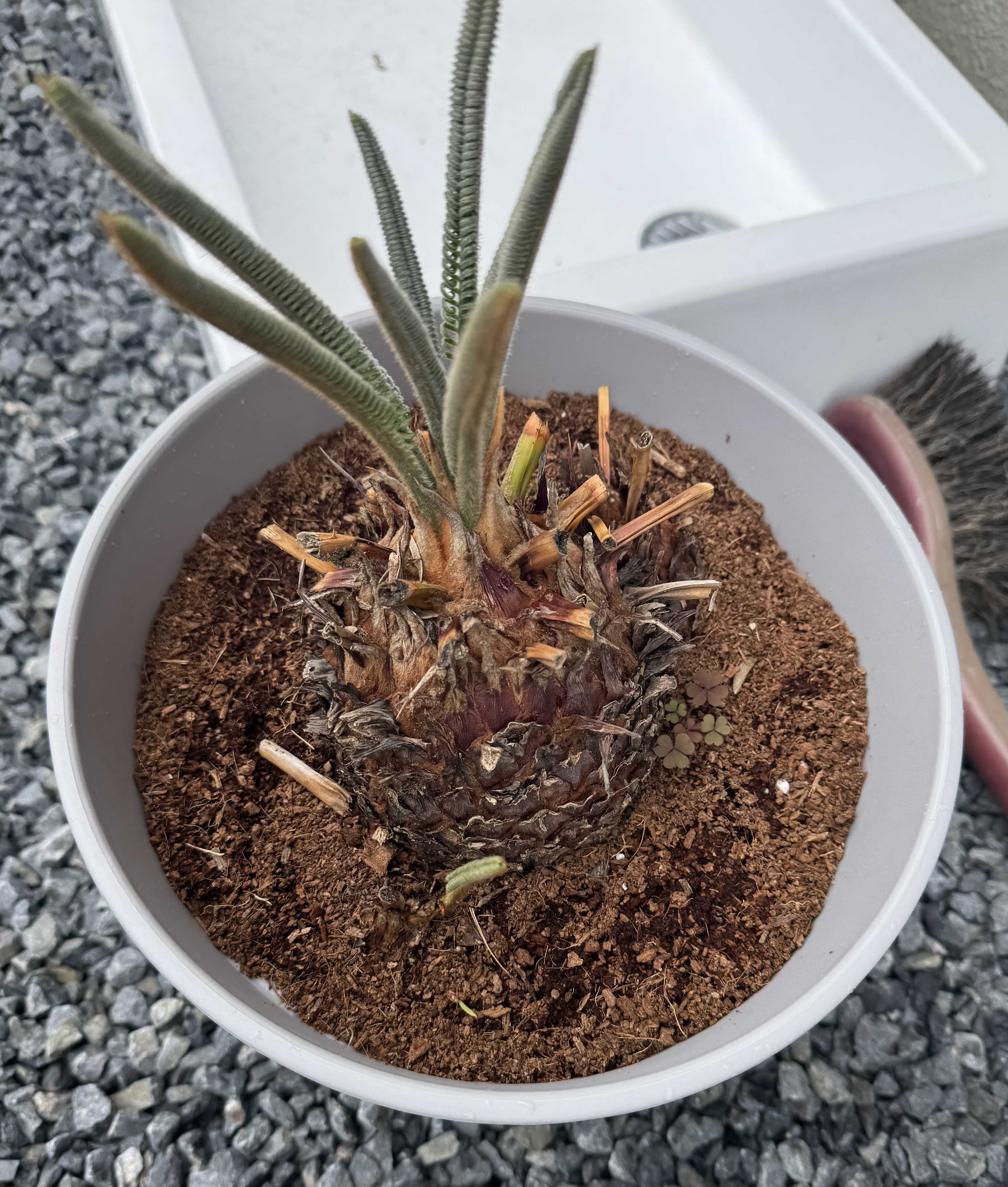 おじいちゃんが庭に植えていた蘇鉄が増えていたので子株を分けてもらい5月くらいから鉢植えで育ててみました😊剪定後だったのでそもそもちゃんと成長するのかなと思ってたら葉っぱが巻き出してどんどん成長してきました👌🏻 ̖́-︎嬉しいです♡beforeafter【選べる現品発送】ソテツ(蘇鉄) 苗木 7号フレグラー鉢植え【AK】こんなオシャレな感じに育てていきたいです❤️🔥⋆͛