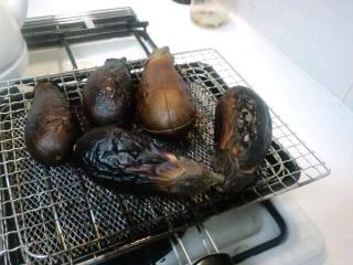 久しぶりの更新ー後回しにすればするほど、おっくうになっちゃいますね…。今日は自分にムチ打って頑張って書きマースまずはおまけの一品シリーズ。定番ですが、私の大大大大だ~い好きな焼きナスです私は常日頃、私が死んだら棺に入れて欲しいものを姉にいろいろ頼んでいるんですが、これもその一つで~す(今度忘れないように棺リストもアップしようかな)焼きナスは、皮をむく時はちょっと熱くて大変ですが、特別な味付けをしなくてもめっちゃ美味しいし、夏は特におススメですナスは洗って、お尻のところにちょっと軽く切れ目を入れておきます。(←あとでむきやすい)そして焼き網で、ナスをこんがり皮が焦げるぐらい焼いて~焼けたら手を水にぬらしながらやけどに気をつけて切れ目から皮をむきます。皮がむけたら、まだ熱いけど頑張って手で適当に6等分ぐらい?に割きます。器にもって冷蔵庫で冷やしておろししょうが醤油でいただきまーす。鰹節をかけてもいいしねぎやみょうがを散したり、ポン酢で食べてもいいし、あとはお好みでー冷やし中華とかおそうめんの具にしても美味しいですよね。でも私はやっぱりしょうがと醤油のみで食べるのが好き(>なのでおねいちゃん、棺に入れる時はしょうが醤油でよろしく~)