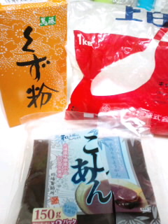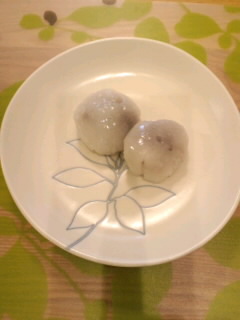 09/7/11の日記に書きましたとおり、まちゃさんが作って来てくれた水まんじゅうが大変美味しかったので、レシピを伺いました。そして、気持ちが風化しないうちに私も作ってみましたレシピのまとめというかおさらいの意味もこめましてしっかり写真もとりましたのでご紹介します。まず材料はこちら~(ちなみにあんこは近所のあんこが美味しいと評判の「あんです」というパン屋さんで売っているこしあんの小分けパックを用意しました。)・葛粉20g・上白糖60g・水80CC水は100CCくらいでもいい気がします。プルプル具合が。<まちゃさんより>材料を準備したら、全てをフライパンに入れて混ぜる。なんと、忘れてたんですが家にはハカリが無かった…ので箱に入っているグラムから割り算した感じで目分量に…。水も砂糖もほぼ…という感じでざっくり入れて見ました材料がいい感じに混ざったら中火にかけて暫くかき混ぜます。(そのうち葛粉が白魚みたいな状態になって固まってくるけど平常心で混ぜ混ぜ…byまちゃさん)これが白魚状態とみた!全体が混ざって柔らかい水飴みたいな感じ?水分が蒸発したら、火から降ろす。そしてここからが和菓子の醍醐味だとか…まだ白っぽい状態から、透明っぽくなるまで、ひたすらかき混ぜる~透明度が出てきたら終了(1分くらい?結構辛い^^;)以上すべてbyまちゃさんこの練り練り、ほんとに結構大変…。これで三個分ぐらいだからこの前はまちゃさん何回もやってくれたのね。もっと食べたいとか軽~く言っちゃってごめんよ~。…とひとり反省するmimijal…さて、頑張って透明っぽくなったらちょっと一息いれて包む作業へ~。予め用意したラップに分けて(3個分くらい)餃子の皮のように広げ(手を水で塗らして丸く広げて。暑いから注意ね)私はしゃもじで混ぜました。しゃもじについた葛も濡れたスプーンなどで取れます~。byまちゃさんそして餡を真ん中にのせて包んで輪ゴムでとめたら、氷水をはったボールに入れてそのまま冷蔵庫に入れて冷やします。私はあんまり待てなくて20分ぐらいたってからもう食べちゃいましたちょっと柔らかかったけど、まあまあ成功でした~まちゃさんも当日器に盛るときに言ってたけど、「ひっくり返さないで~」という状態に私もなりました。欲張ってあんこ入れすぎたかな…?食べるのもちょっと早すぎたし、目分量だからちょっと柔らかめでしたが味は美味しかったですでもやっぱりまちゃさんが作って来てくれたやつのほうがだんぜん美味しかったから、またぜひよろしく~といって楽しようとたくらむ私…。ま、そんなこと言ってますが思ったより気軽に失敗無く作れる感じですので皆様も良かったらぜひどうぞ~。(もう季節的に遅いか…)ただ一人で大量に作るのはちょっと大変かと思いますので2、3人の来客用とか自分用に作るのがベストです。大量につくるときは友達同士でわいわい作るのも良いかもしれませんね。